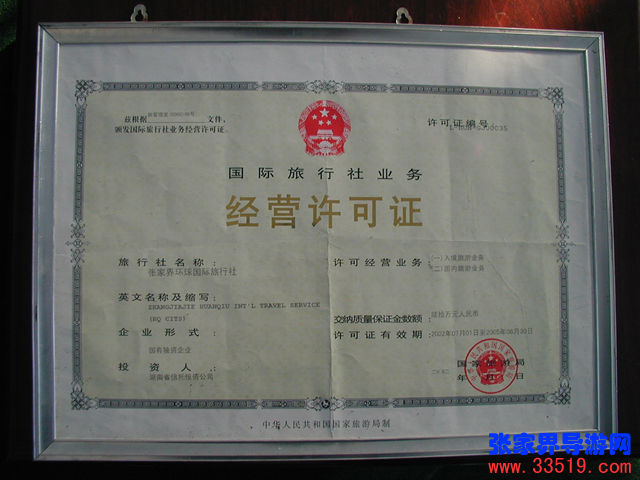 張家(ch見n)界環球國際旅行社經營許可