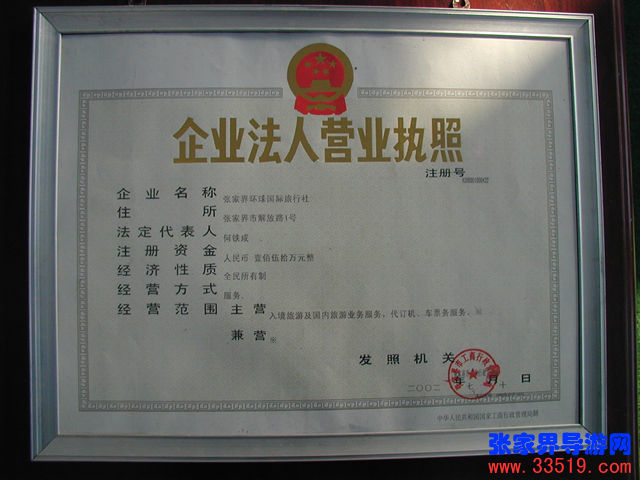 張家(ch見n)界環球國際旅行社營業執照