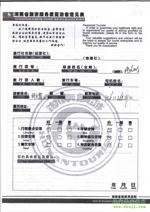 2010年10月22日何先生旅游質量反饋