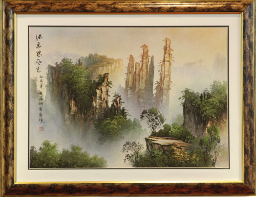 粘貼畫多以本境秀麗山水風(fēng)光與土家風(fēng)情為題材,富有立體感和真實感。