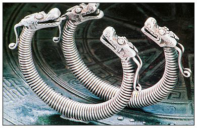 銀飾以其多樣的品種、奇美的造型和精巧的工藝,不僅向人們呈現(xiàn)了一個瑰麗多彩的藝術(shù)世界,而且也展示出一個有著豐富內(nèi)涵的精神世界。銀飾的種類較多,從頭到腳,無處不飾。除頭飾、胸頸飾、手飾、衣飾、背飾、腰墜飾外,個別地方還有腳飾。